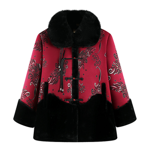奶奶冬装外套中老年皮毛一体大衣女妈妈保暖上衣老人加绒加厚棉袄