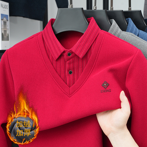 雪中飞一体高领毛衣男士冬季新年纯色加绒加厚保暖针织衫打底上衣