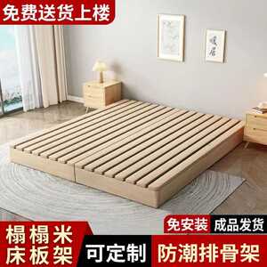 实木日式榻榻米落地矮床出租房床架地台双人骨架防潮出租屋木板床
