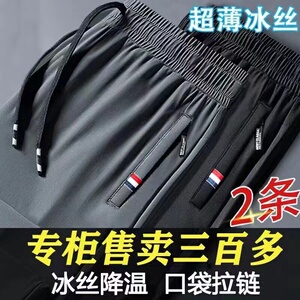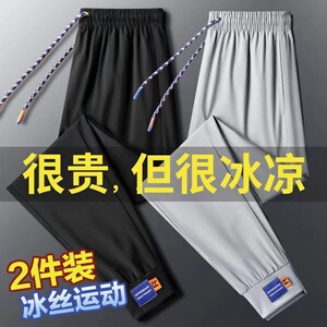 清仓捡漏~男士冰丝凉感休闲裤中青年松紧腰宽松运动薄款纯色长裤