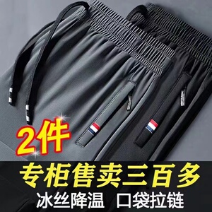 干活穿的运动冰丝速干裤男款夏季薄款耐磨男裤束脚休闲男士长裤子