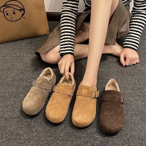 2025冬季新款复古平底浅口加绒保暖豆豆鞋一脚蹬软底防滑棉鞋勃肯