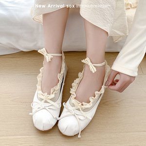 梗豆物语绑带蝴蝶结芭蕾舞风女士花边船袜玛丽珍百搭芭蕾鞋浅口袜