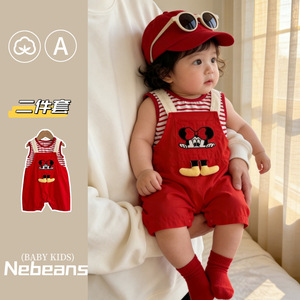 【无袖上衣+背带裤】卡通婴儿连体哈衣夏宝宝两件套新生儿衣服薄