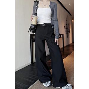 灰色阔腿裤女春秋季2025新款高级感垂感休闲窄版直筒显瘦西装裤子