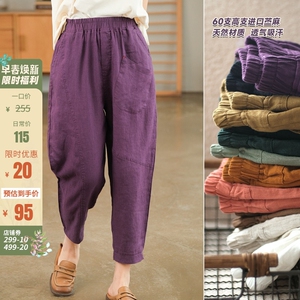 小耳出品【元气少女】春季新品苎麻套结斜口袋哈伦裤女舒适女裤