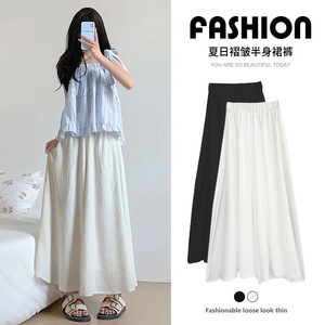 白色裙裤女夏季薄款小个子飘飘百褶a字半身裙冰丝高腰垂感阔腿裤