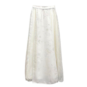 雅居精品女装 女装百搭女纱裙新 提花纱复古半身裙风汉服马面裙