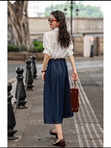 2024年春季牛仔半身裙女韩版高腰弹力紧身开叉鱼尾裙包臀中长裙子