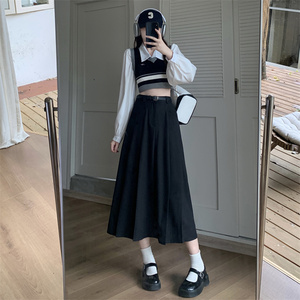 百褶半身裙女秋装小个子复古中长款a字裙高级感灰色显瘦西装伞裙