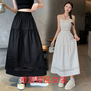66317实拍大码气质时尚钩花国风裙新款高腰显瘦设计感半身裙