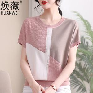 冰丝短袖t恤女夏季薄款2025新款韩版时尚洋派减龄圆领针织衫上衣