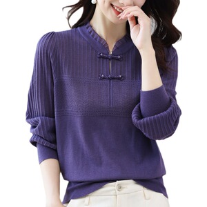 新款冬季新年拜年洋气新品彩扣圆领纯色百搭女士小衫