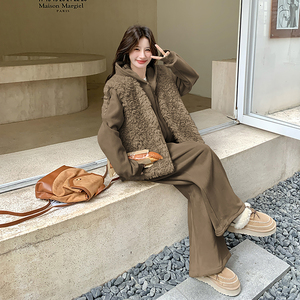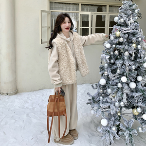 现货2D078-Y3384-P285K399加厚连帽套装羊羔毛马甲3件套2色