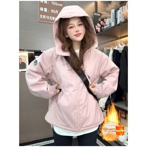 加绒加厚双拉链连帽冲锋衣外套女