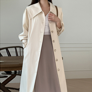 韩系收腰中长款风衣女2024秋季新款高级感宽松休闲气质大衣外套