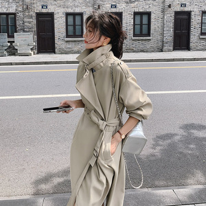 韩系卡其色宽松翻领中长版风衣女2026春秋新款高级感流行爆款外套