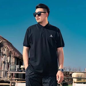 毕蒙肥佬加肥加大码短袖翻领polo衫胖子夏季宽松商务纯棉黑色t恤