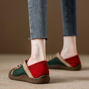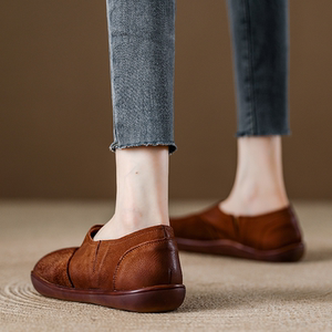 春秋英伦复古森系浅口单鞋女款真皮一脚蹬丑萌女鞋头层牛皮奶奶鞋