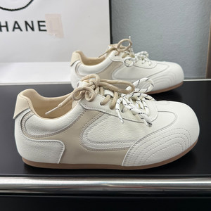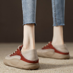 真皮复古拼色德训鞋女厚底2026新款春季休闲百搭阿甘鞋透气运动鞋