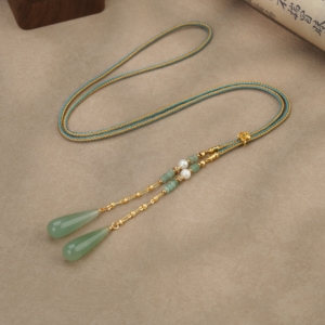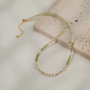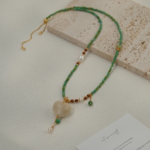 绿东陵项链珍珠手工百搭少女复古简约清新甜美