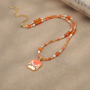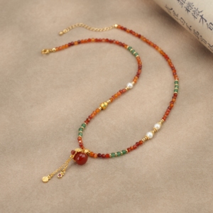 红玛瑙项链珍珠手工气质轻奢时尚百搭复古小众