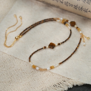 虎眼石四叶草项链珍珠手工百搭复古轻奢小众