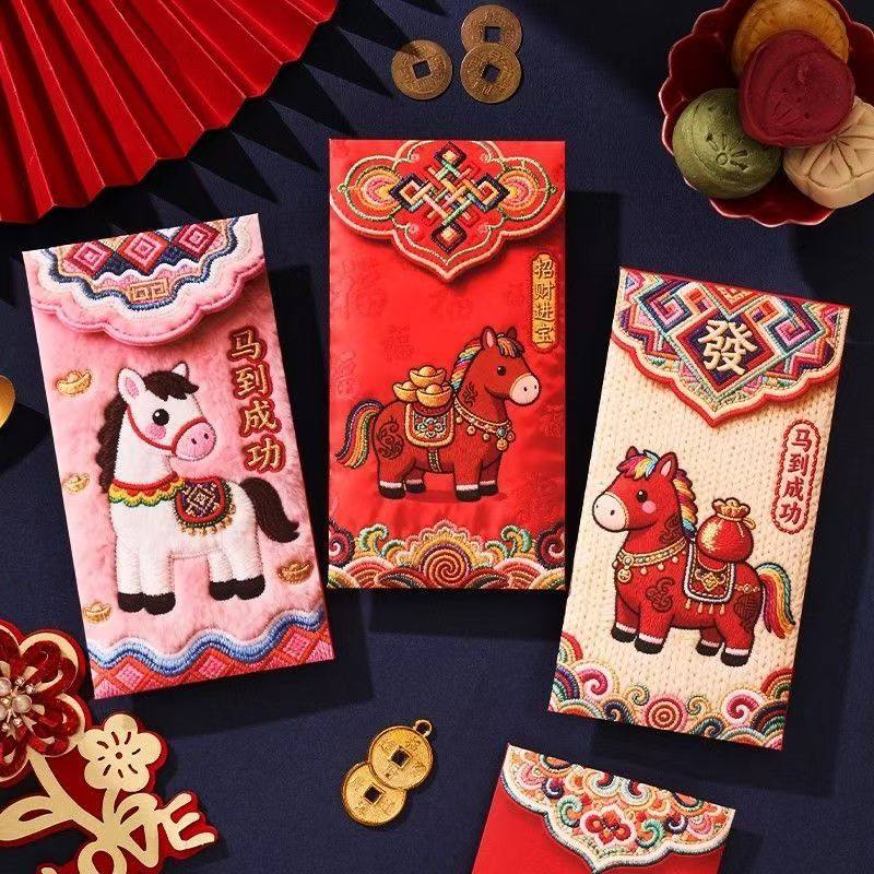 纸质5D仿刺绣视觉红包马年红包天花板春节新年红包高档压岁钱红包