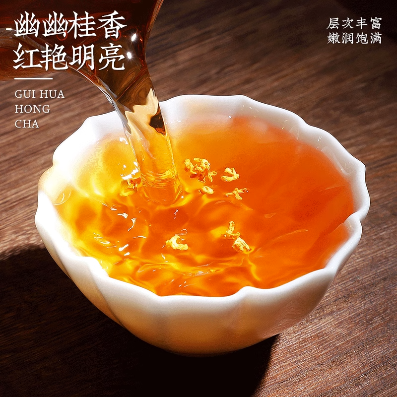 【拍2罐送礼袋】特级桂花红茶新茶浓郁蜜香小种红茶叶浓香花香扑鼻香气浓郁香气持久温和沁脾亮丽舒展秀挺鲜活幽幽桂香红艳明亮嫩润饱满。
