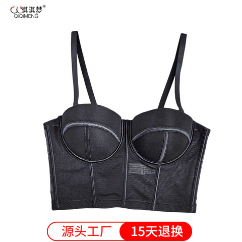 欧美网纱吊带上衣外穿内搭透气大露背运动型上托鱼骨胸衣裹胸