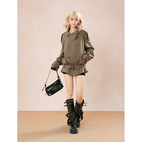 韩系设计感立领双排扣复古风衣秋季新款小众简约通勤气质百搭外套