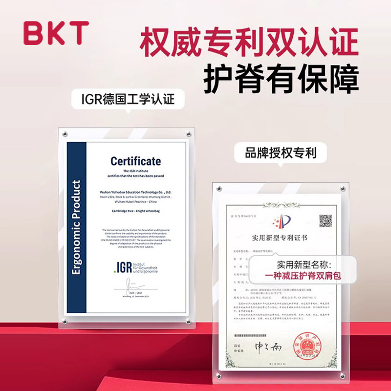 【淘客券减130,淘金币减0.6,到手价147.4元/件。】BKT护脊超轻防水男女童书包1~6年级,超赞~