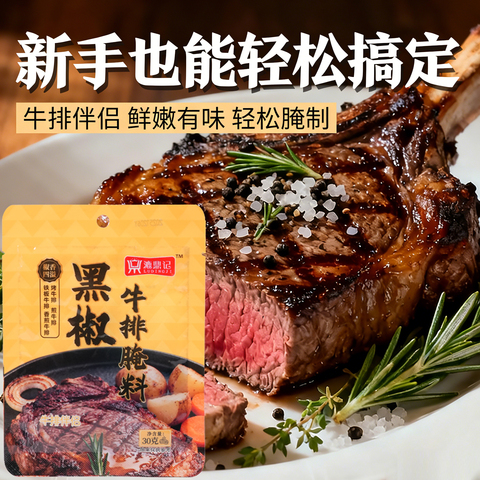黑椒牛排腌料,法式风味,提升肉质鲜嫩多汁!含黑胡椒粉、煎焗粉,适用于牛排、鸡排等多种食材,调味方便,口感浓郁,厨房必备调味神器!