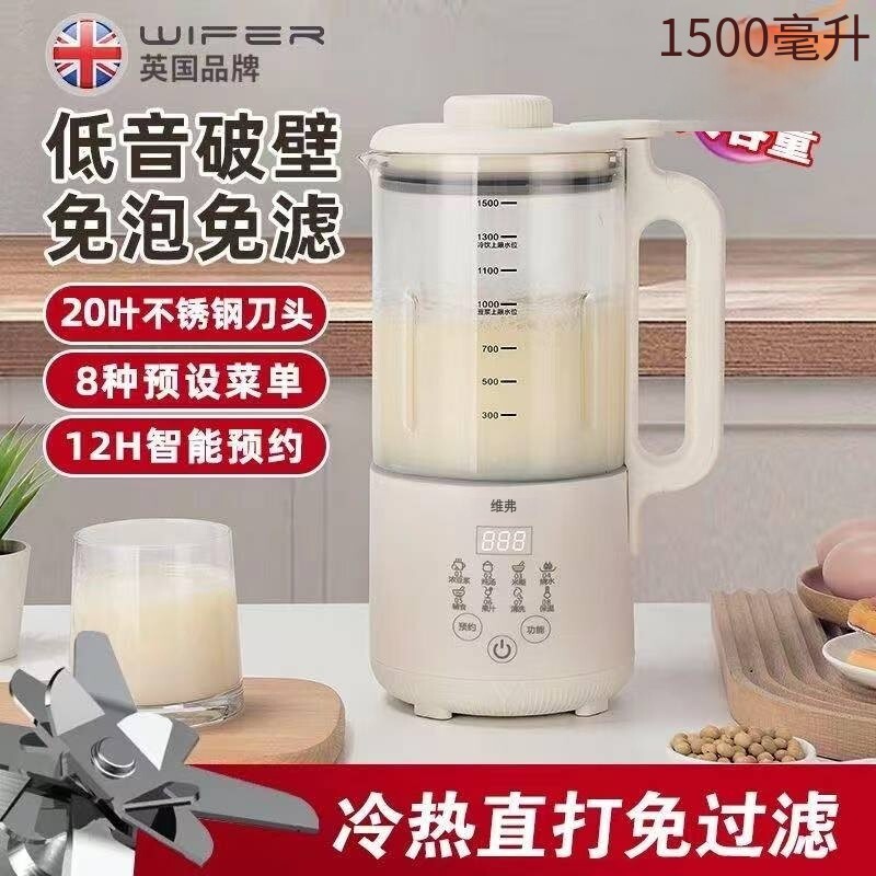 WIFER新款破壁机镀钛不粘锅防糊底3-5人免泡免过滤家用豆浆机