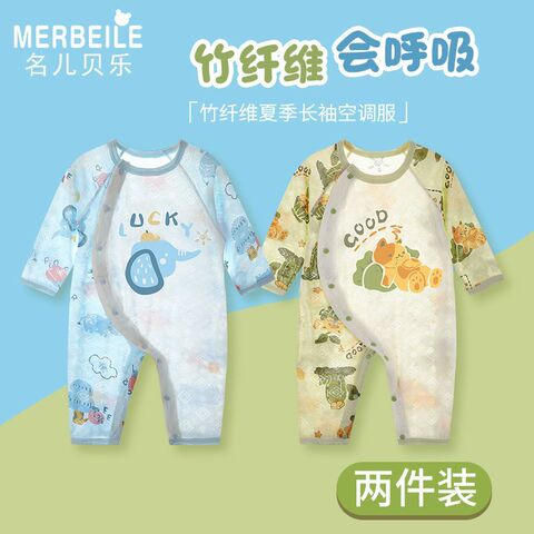 新生婴儿连体衣宝宝夏季哈衣睡衣竹纤维薄款长袖空调衣服春夏外出