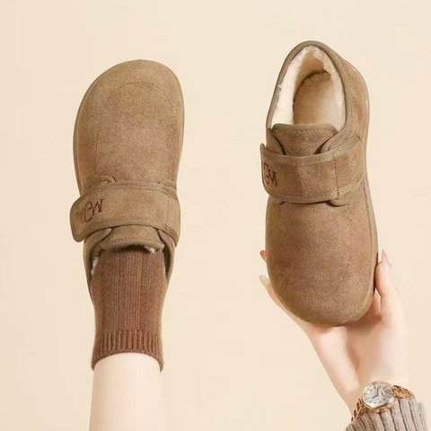 2025新款勃肯棉拖鞋低帮魔术贴加绒雪地靴女舒适百搭棉鞋保暖加绒