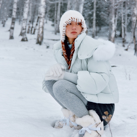 【李佳琦直播间时尚节】艾莱依短款女毛领甜美90鸭绒羽绒服