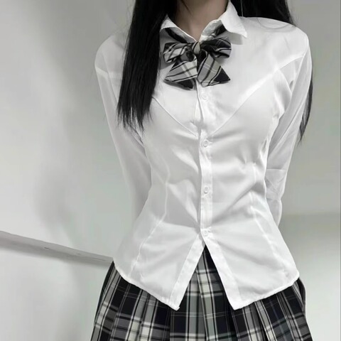 88¥ CZ057 yEVB5aW6s0H¥ https://m.tb.cn/h.iTpGBA9 学姐收腰衬衫原创JK制服纯欲辣妹风显瘦百搭白色长袖衬衣女秋冬款