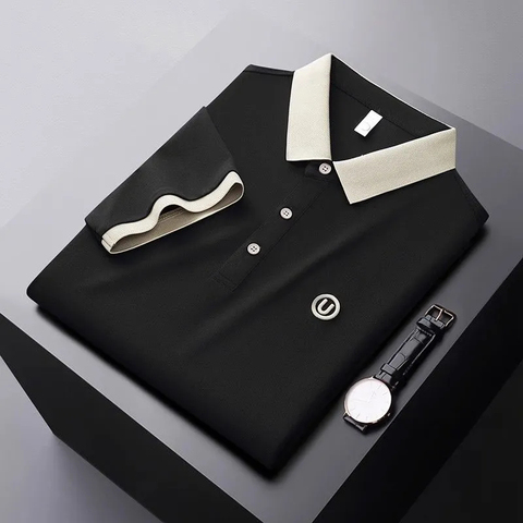 冰丝英伦撞色刺绣男士Polo衫