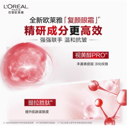 欧莱雅复颜专研抗皱紧致眼霜积雪草补水保湿淡化细纹7.5ml*4。