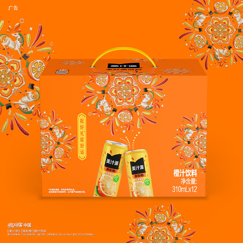 美汁源果粒橙橙汁果汁果味烟花装整箱饮料 马年定制烟花礼盒装