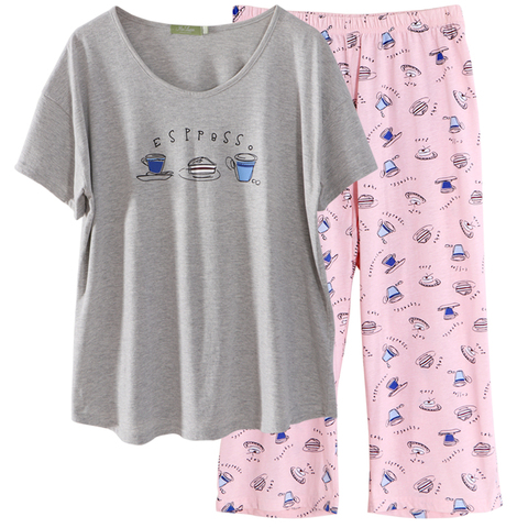 67¥ CZ009 93A45aWuHw6¥ https://m.tb.cn/h.ihxbQL7 胖mm250斤加大码睡衣套装春夏短袖七分裤女士棉质加肥宽松家居服