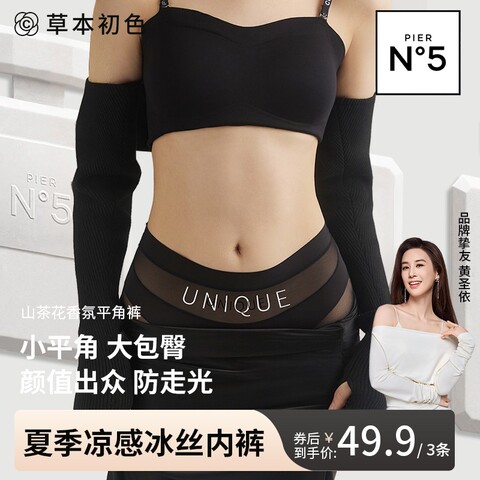 草本初色新年秋冬山茶花精油无痕平角裤中高腰轻收腹全包裹内裤女