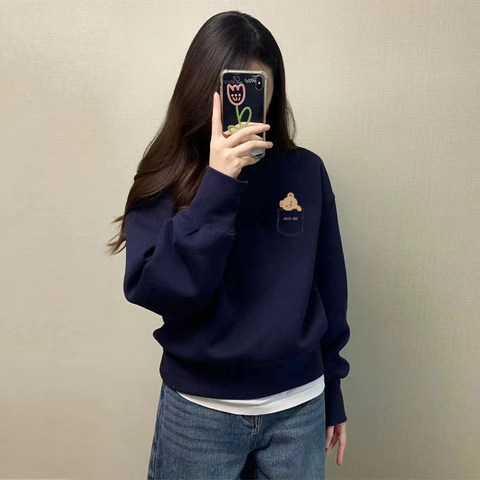 27¥ HU108 a4MN5a9XQtH¥ https://m.tb.cn/h.iTBMYJ7 复古韩系卫衣女2024秋冬休闲圆领长袖百搭小个子宽松加绒加厚上衣