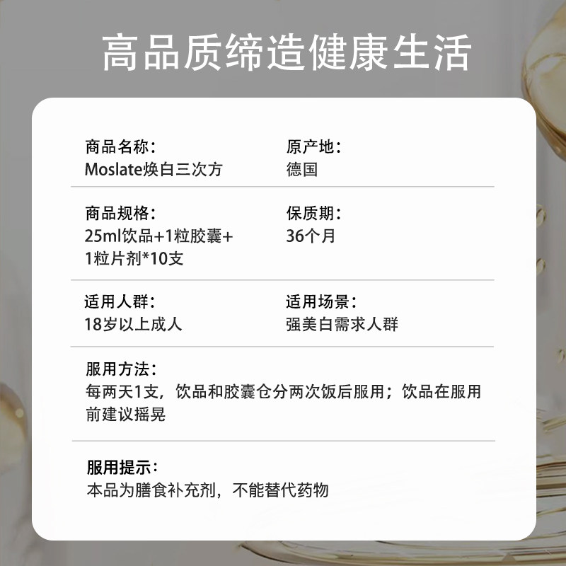 【自营】德国Moslate焕白饮白番茄+麦角硫因内调亮白胶原蛋白口服 【售价】:¥904.00 【券后】:¥800.00 【优惠券】:¥104 推荐理由:【可叠88vip和淘金币】Moslate麦角硫因白番茄焕白饮10支,超赞~ 👉复制这条信息打开【手机淘宝APP】即可领券购买:/