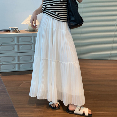 68¥ MF287 Z0Ff5aYh465¥ https://m.tb.cn/h.i6XKNpT 白色雪纺半身裙女中长款2026夏新款A字伞裙大摆裙垂感百褶长裙子