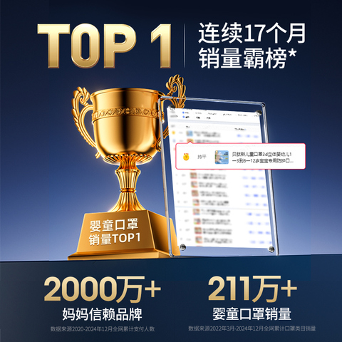 (优惠券39-4)贝肽斯儿童口罩3d立体婴幼儿1一3到6一12岁宝宝专用防护口耳罩。