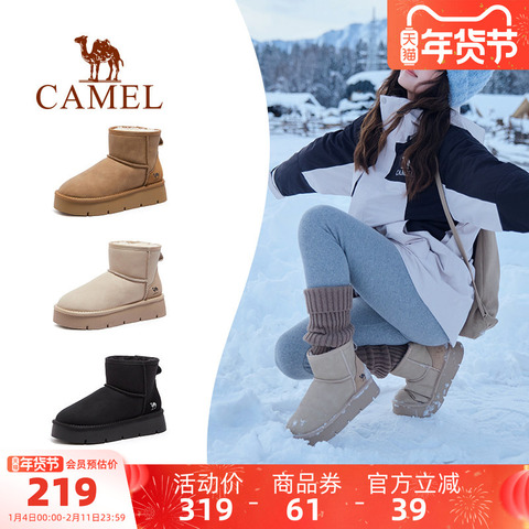 双倍礼金43元淘金币10元 叠消费券20元,到手146左右 骆驼雪地靴女鞋加绒小暖炉厚底短靴子棉鞋