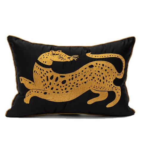 桥溪屋轻奢腰枕绣花金钱豹沙发靠垫抱枕套样板间酒店客厅风靠背套