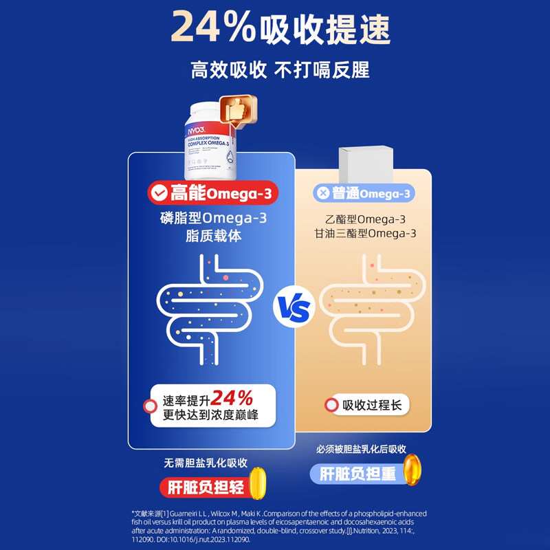 下单领取满769减200元优惠券,参与满2件打7.17折,满1件打9.5折,立减96元优惠活动,下单4件,实付低至261元,单件65.25元!NYO3海洋磷脂鱼油软胶囊,实测95%纯度,omega3高浓度吸收,呵护心脑眼,高吸收复合欧米伽-3,男女通用!